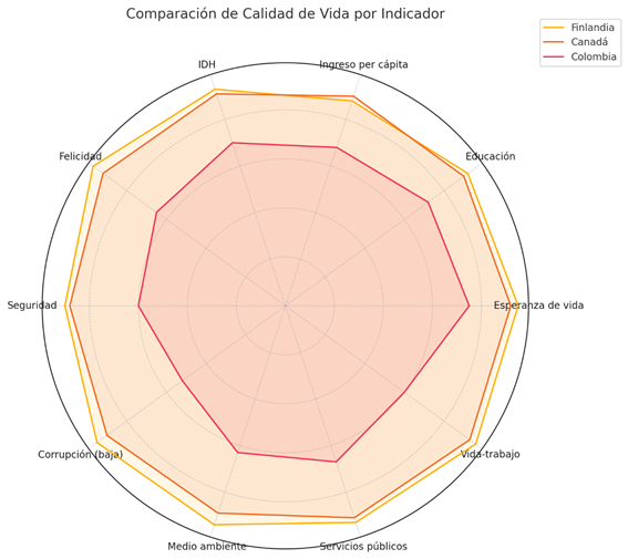 Aunque mencionas índices como el IDH o el World Happiness Report, no hay citas precisas ni enlaces. Agregar referencias específicas o año de los reportes fortalecería el respaldo del contenido.